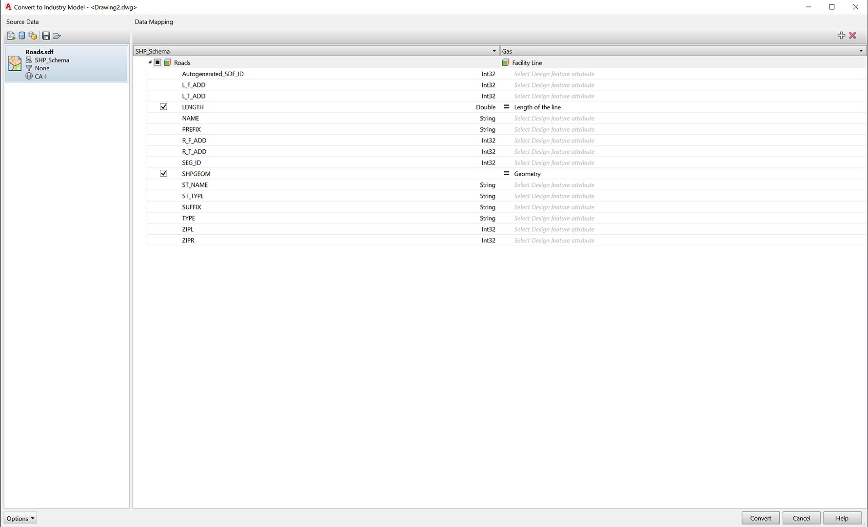 Convert data between DWG and GIS data