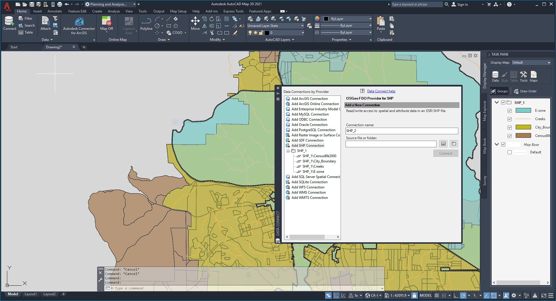 Edit data against GIS data sources, such as ESRI SHP, MapInfo, and Oracle with standard AutoCAD commands.