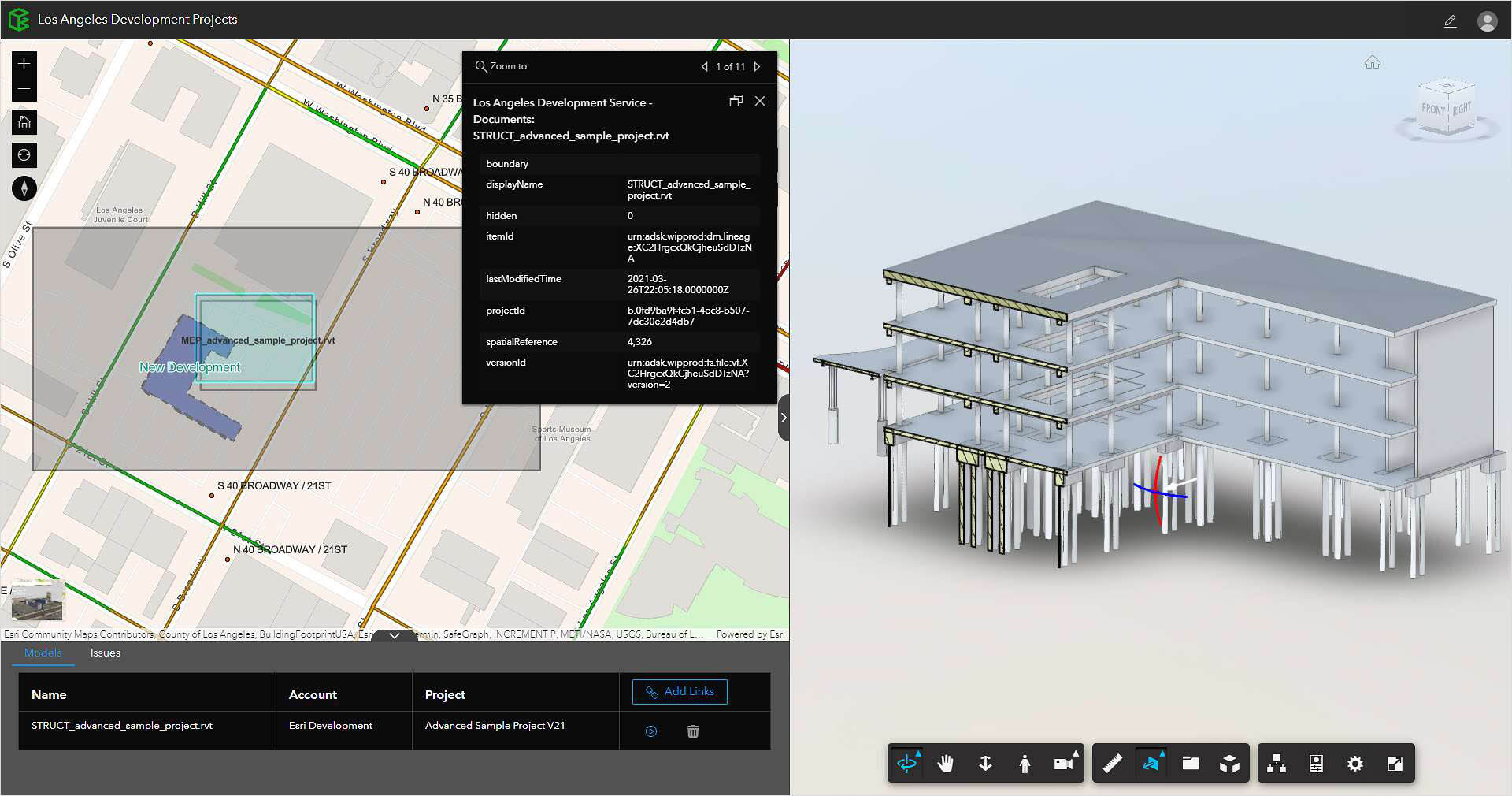 Visualize and evaluate project information in a web-based experience using ArcGIS GeoBIM and Autodesk BIM Collaborate Pro, allowing AEC teams to seamlessly collaborate and manage risks, costs, and timelines using data from multiple systems in a geospatial context.