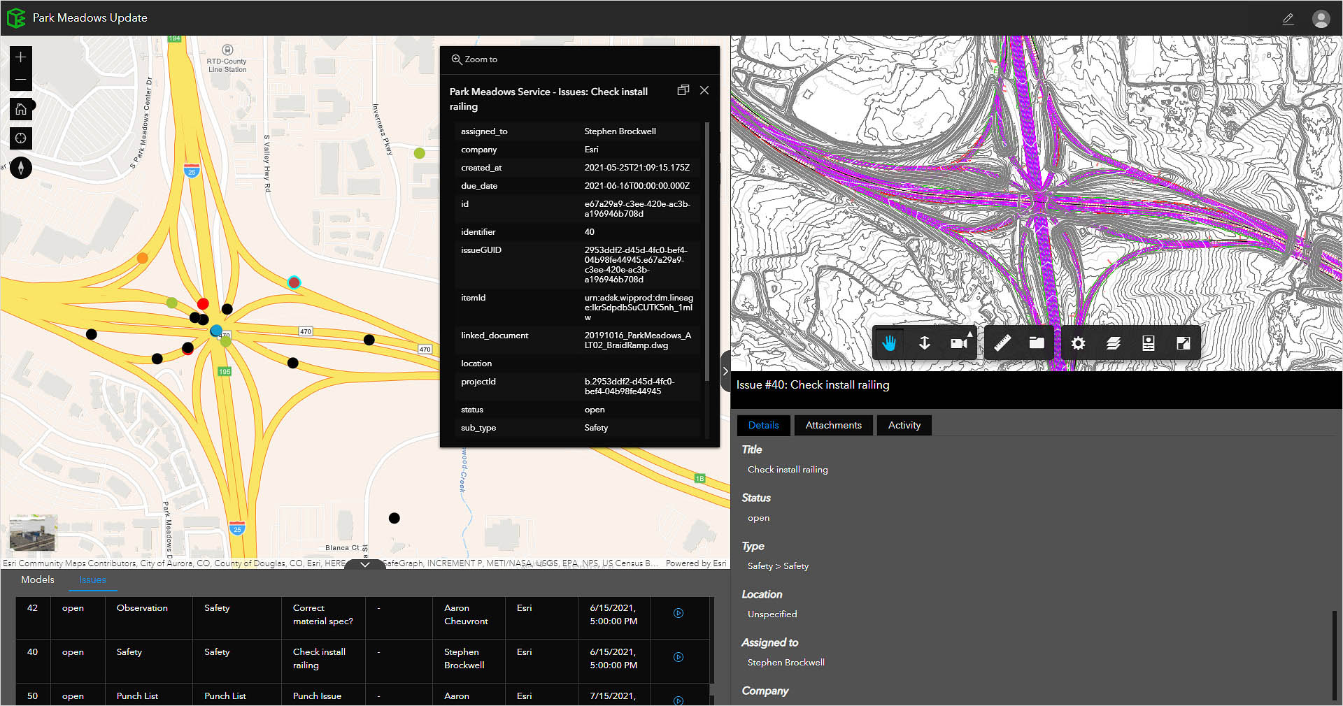 Link up-to-date project information with geospatial context for improved design review, visualization, and exploration.