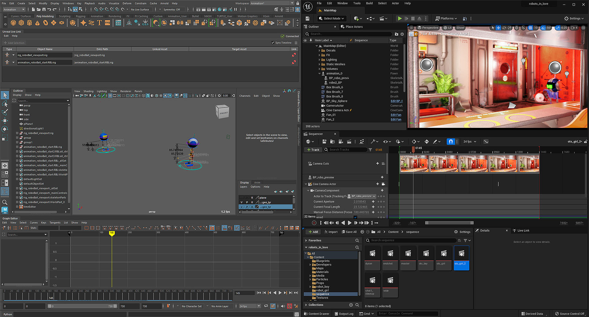 Stream animation data from Maya to Unreal Engine in real time, which lets you work on character assets in Maya while seeing a preview inside Unreal.